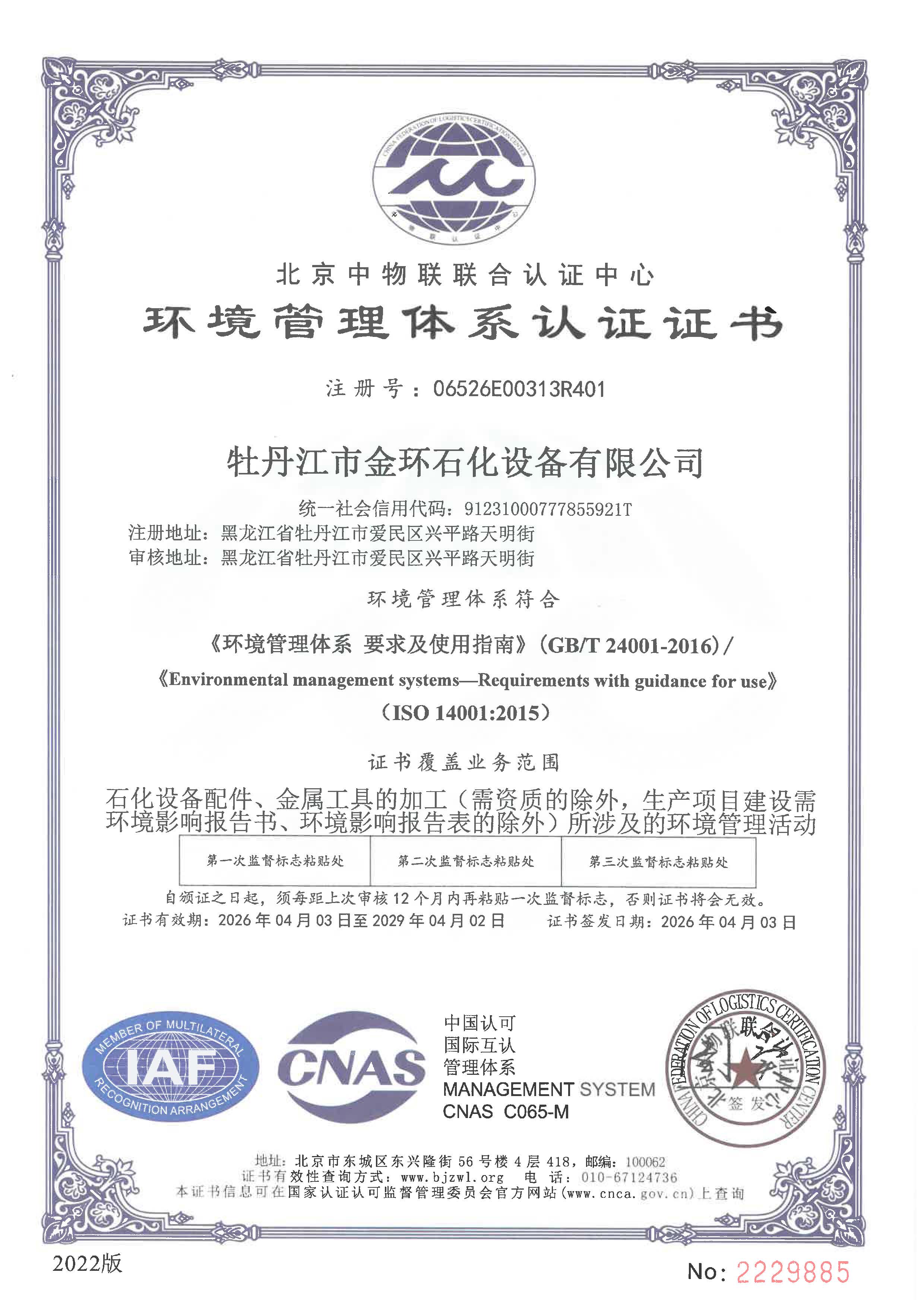 環(huán)境管理體系證書